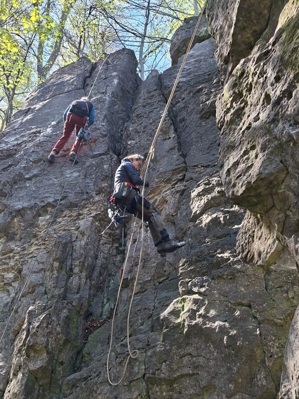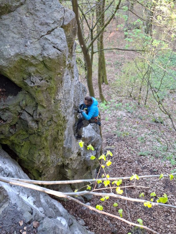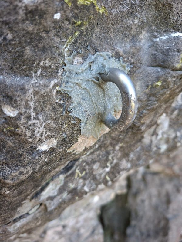 In einer konzertierten Aktion wurden zum Saisonbeginn die rund 40 torsionsfreundigen Haken von Arne Grage, Lucas Hilsmann und mir ausgebohrt und drehfest wieder im Fels platziert. Der gut gesicherten Kletterfreude steht nun nichts mehr im Wege.